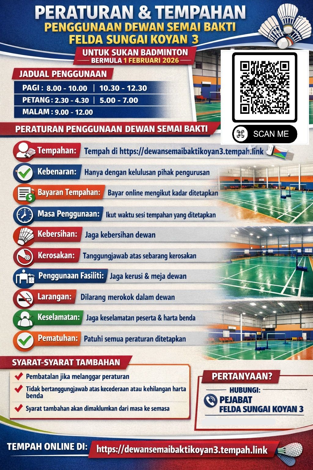 TEMPAHAN PERLU DIBUAT SELEWAT-LEWATNYA 30 MINIT SEBELUM PENGGUNAAN. *SEAT/PAX=GELANGGANG